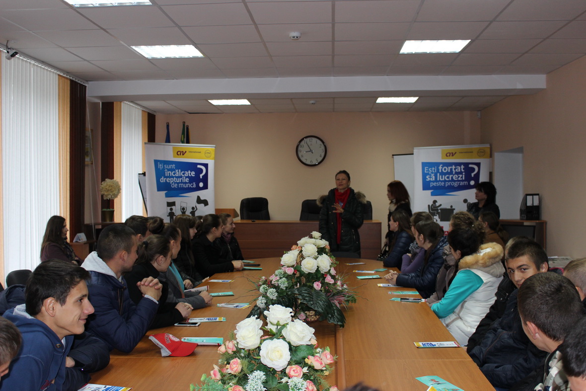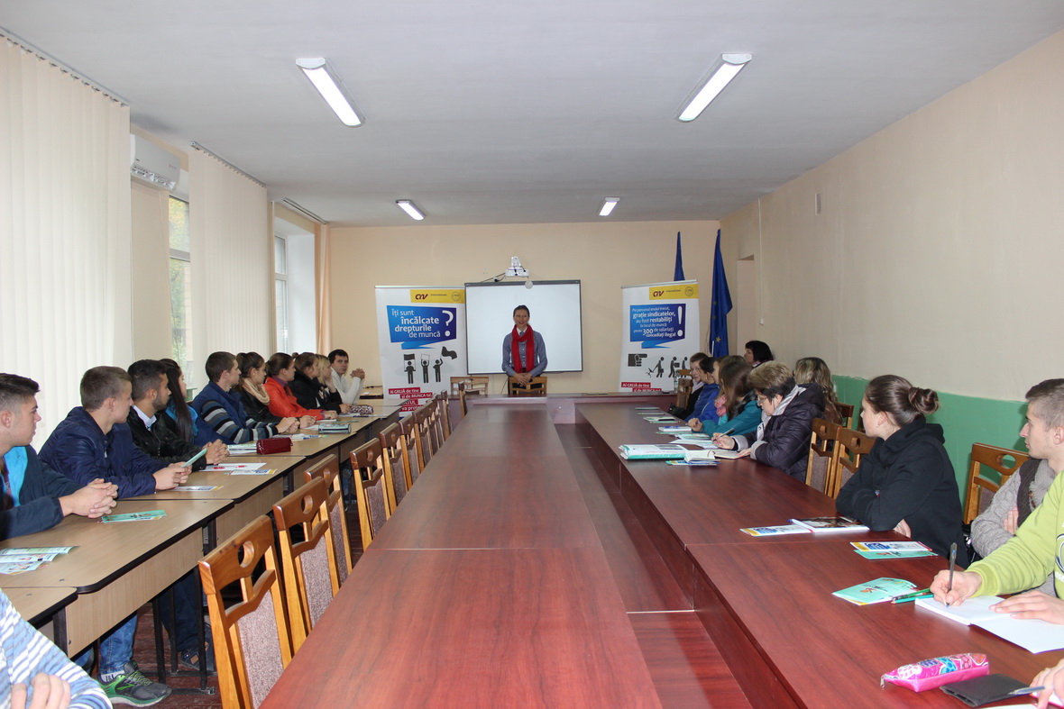 Rodica Popescu, formator sindical, a prezentat tinerilor o informaţie amplă despre activitatea sindicatelor din Republica Moldova, a comunicat despre rolul şi obiectivele sindicatelor, îndemnând tinerii să adere la sindicate şi să formeze organizaţii sindicale atunci când se angajează în câmpul muncii. Un accent deosebit s-a pus pe importanța încheierii contractului individual de muncă, care asigură salariatului un pachet social și condiții decente de muncă.